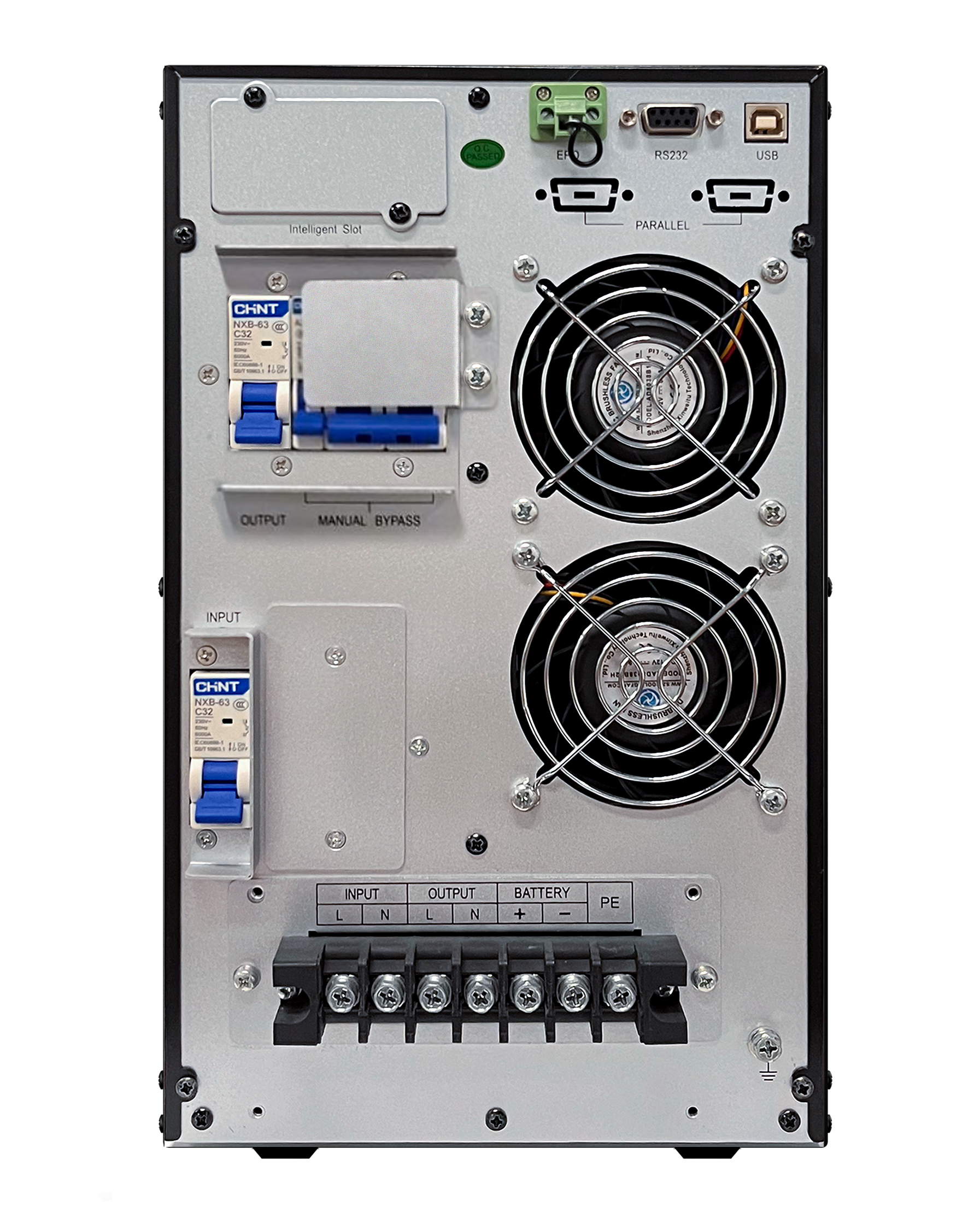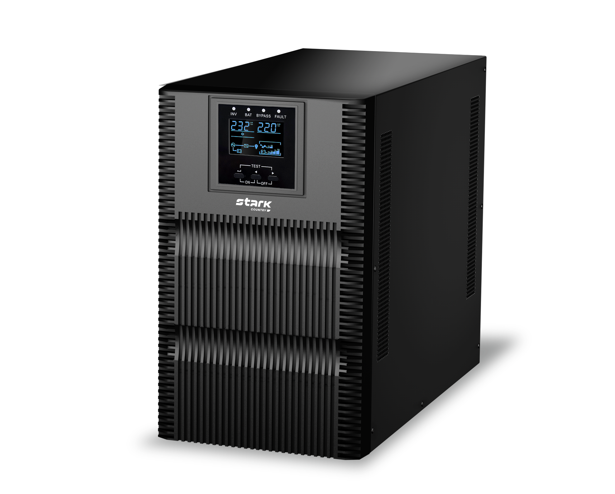 Однофазный Онлайн ИБП Stark Country 10000 Online ONE выпускается мощностью 10000 ВА / 10000 Вт в напольном исполнении. Топология двойного преобразования обеспечивает высокое качество тока на выходе — форма выходного напряжения идеальный синус (защита от всех типов помех и проблем в питающей сети). Источник бесперебойного питания обладает высокой перегрузочной способностью: до 150%. Внутренний микропроцессор отслеживает любые колебания сети и производит точную стабилизацию. Источник поставляется без аккумуляторных батарей - необходимо покупать отдельно. К источнику должно быть подключено 16-20 аккумуляторов максимальной емкостью до 240 Ач. Время автономной работы ИБП напрямую зависит от емкости выбранных аккумуляторов. Также возможно дистанционное управление и мониторинг устройства через подключение сетевой SNMP карты.