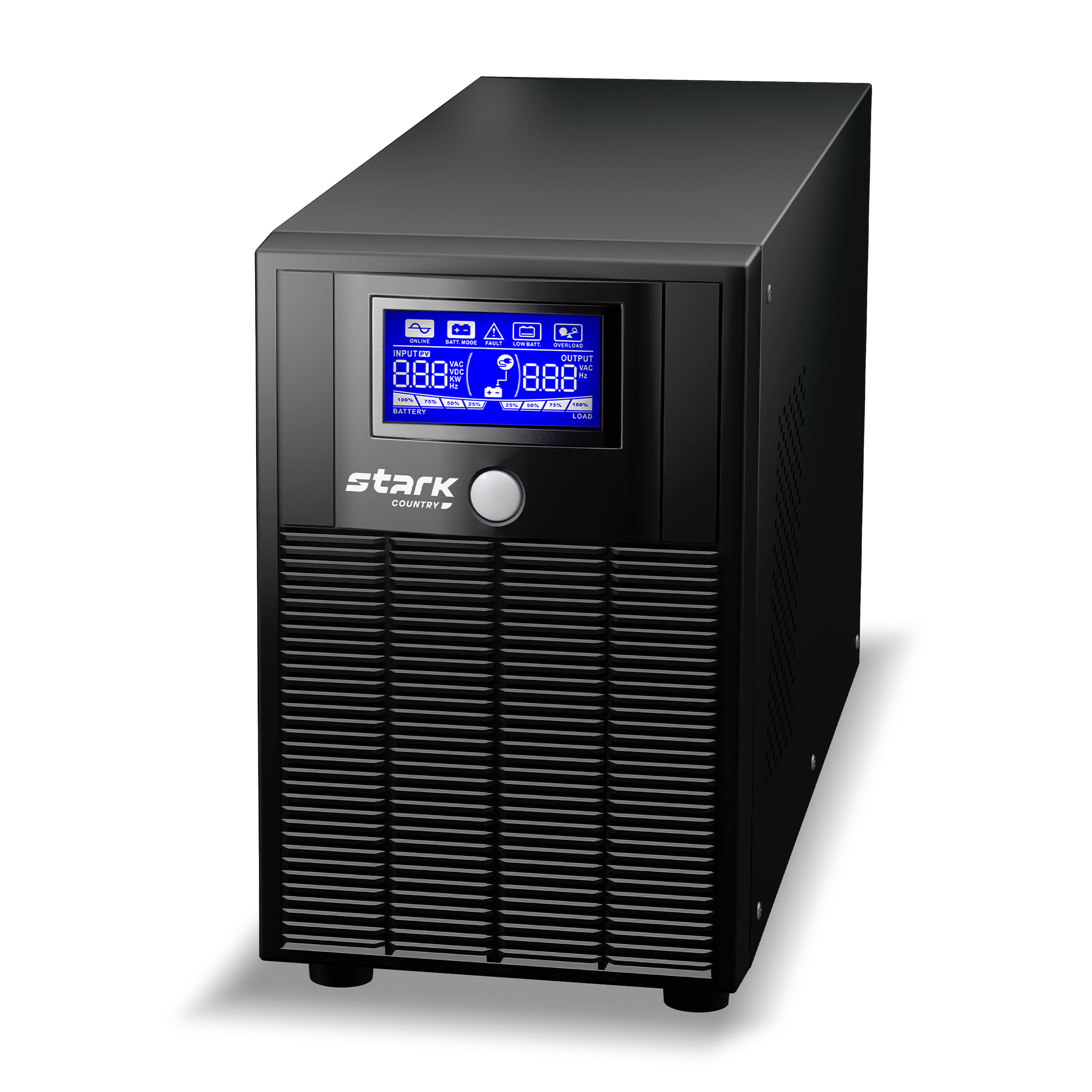 Источник бесперебойного питания Stark Country 1000 LI относится к группе “Линейно Интерактивных ИБП”. Данные источники бесперебойного питания выполнены по схеме с коммутирующим устройством (Off-Line) и дополненный автоматическим регулятором напряжения на основе автотрансформатора с переключаемыми обмотками (ступенчатым стабилизатором). В случае понижения напряжения на входе функция стабилизации будет ступенчато повышать напряжение до необходимого значения. Если же напряжение на входе понизится очень существенно или же будет отсутствовать - ИБП переключится на работу от АКБ. Время переключения на работу от АКБ у ИБП такого типа может составлять от 4 до 10 мс. Форма сигнала на выходе представляет собой чистую синусоиду.