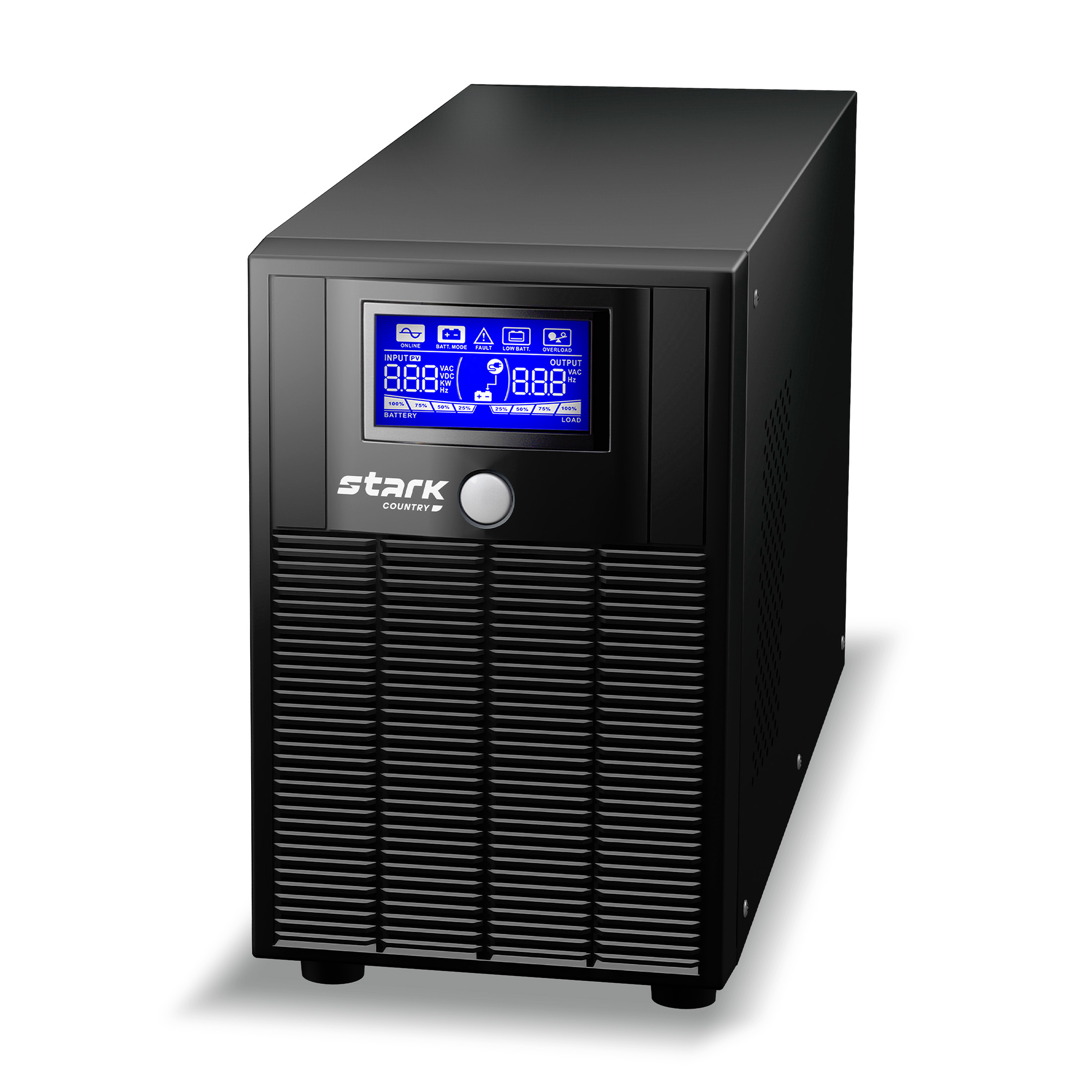 Источник бесперебойного питания Stark Country 2000 LI относится к группе “Линейно Интерактивных ИБП”. Данные источники бесперебойного питания выполнены по схеме с коммутирующим устройством (Off-Line) и дополненный автоматическим регулятором напряжения на основе автотрансформатора с переключаемыми обмотками (ступенчатым стабилизатором). В случае понижения напряжения на входе функция стабилизации будет ступенчато повышать напряжение до необходимого значения. Если же напряжение на входе понизится очень существенно или же будет отсутствовать - ИБП переключится на работу от АКБ. Время переключения на работу от АКБ у ИБП такого типа может составлять от 4 до 10 мс. Форма сигнала на выходе представляет собой чистую синусоиду.