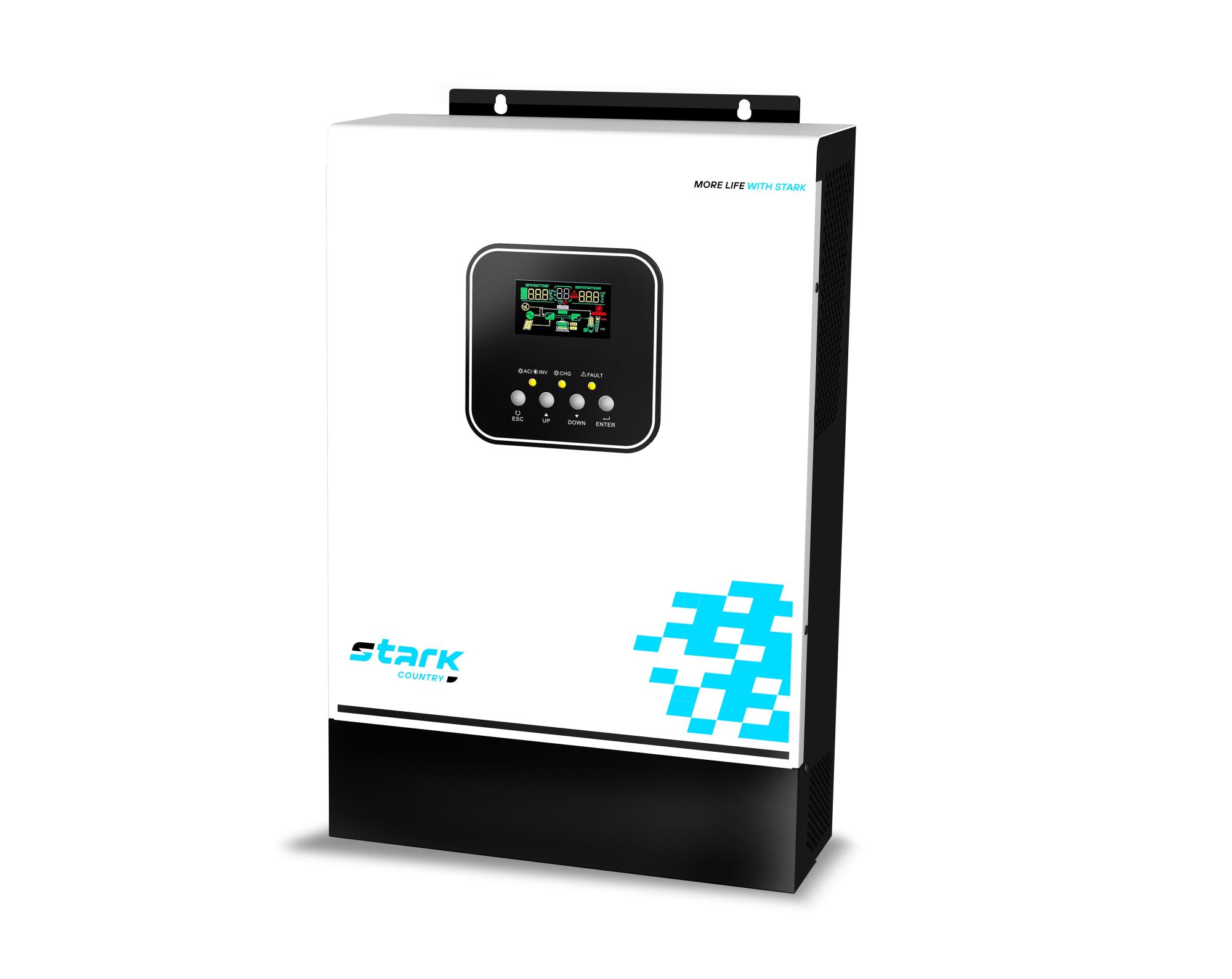 Однофазный ИБП STARK COUNTRY 3000 INV MAX производится мощностью 3000 ВА / 3000 Вт в настенном форм-факторе. Его главная особенность — работа в паре с солнечными панелями (внутри источника установлены встроенные контроллеры). Это позволяет использовать источник для питания мобильных домов, яхт и позволяет не зависеть от перебоев сети. Однофазный оффлайн источник бесперебойного питания STARK COUNTRY 3000 INV MAX совместим с любыми видами генераторов. Он обеспечивает потребителей качественным током — напряжение на выходе с батарей имеет форму чистой синусоиды. Помимо этого, ИБП имеет широчайший диапазон настроек, что позволяет адаптировать его под любые запросы. Максимальный ток зарядного устройства - 60 А. Максимальная емкость заряжаемых аккумуляторов 1200 Ач. Количество последовательно соединенных аккумуляторов - 2 шт.