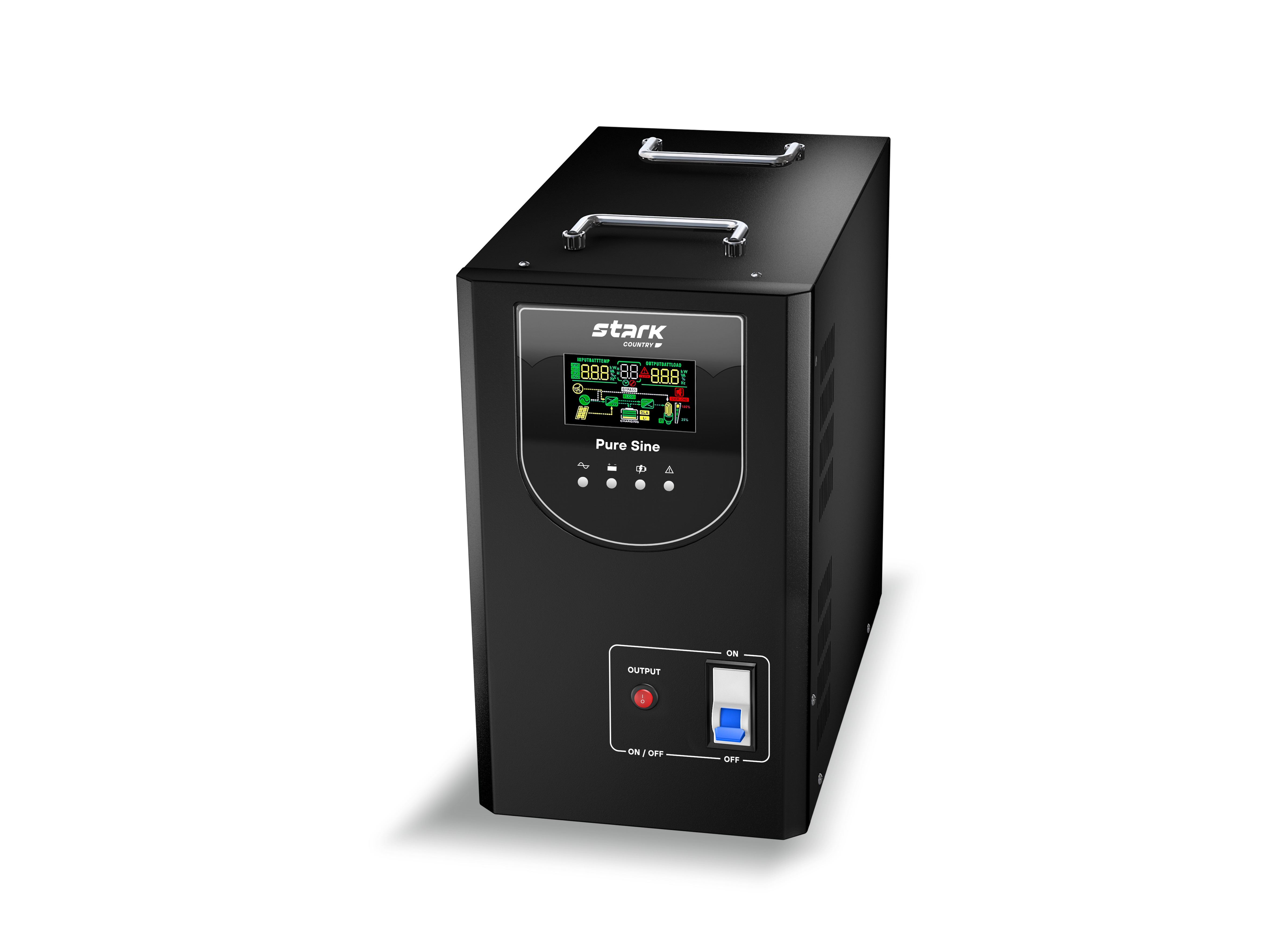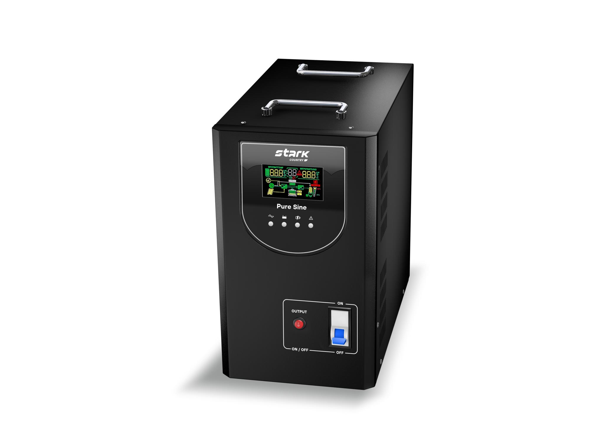 Источник бесперебойного питания Stark Country 3000 PS относится к группе “Линейно Интерактивных ИБП”. Данные источники бесперебойного питания выполнены по схеме с коммутирующим устройством (Off-Line) и дополненный автоматическим регулятором напряжения на основе автотрансформатора с переключаемыми обмотками (ступенчатым стабилизатором).