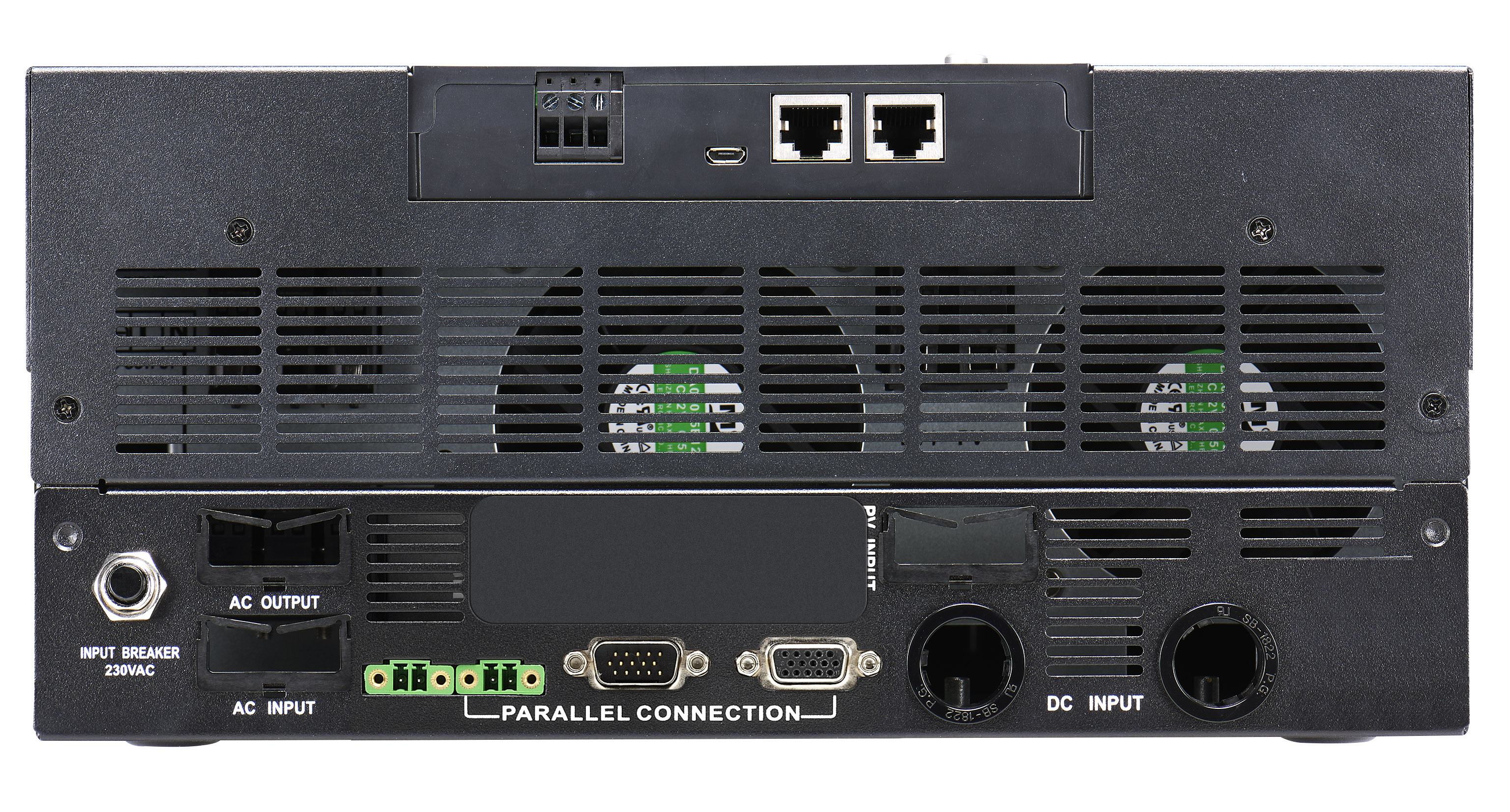 Однофазный ИБП STARK COUNTRY 5000 INV SOLAR производится мощностью 5000 ВА / 5000 Вт в настенном форм-факторе. Его главная особенность — работа в паре с солнечными панелями (внутри источника установлены встроенные контроллеры). Также со временем можно наращивать мощность: параллельно могут работать до 9 ИБП. Он обеспечивает потребителей качественным током — напряжение на выходе с батарей имеет форму чистой синусоиды. Помимо этого, ИБП имеет широчайший диапазон настроек, что позволяет адаптировать его под любые запросы. Максимальный ток зарядного устройства - 100 А. Максимальная емкость заряжаемых аккумуляторов 2000 Ач. Количество последовательно соединенных аккумуляторов - 4 шт.