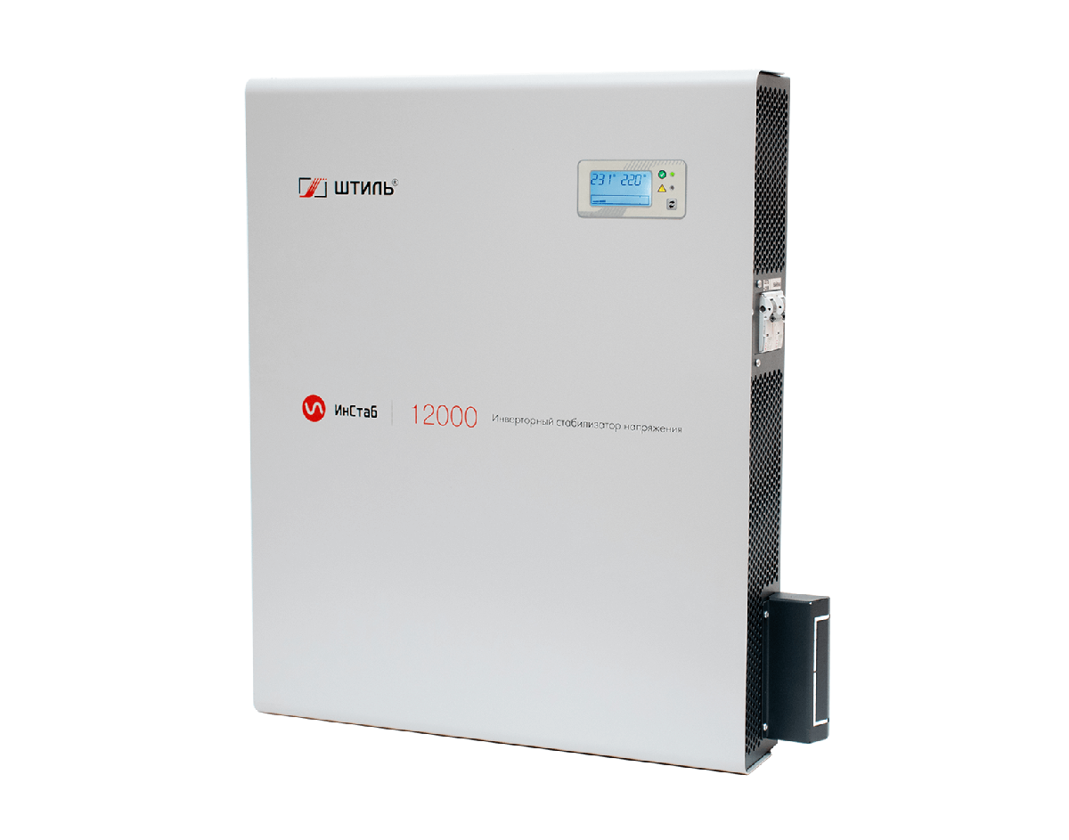 Однофазный инверторный стабилизатор напряжения Штиль ИнСтаб IS12000 обеспечит надежную защиту от перепадов напряжения нагрузки с суммарной потребляемой мощностью не более 12 кВА/11 кВт.