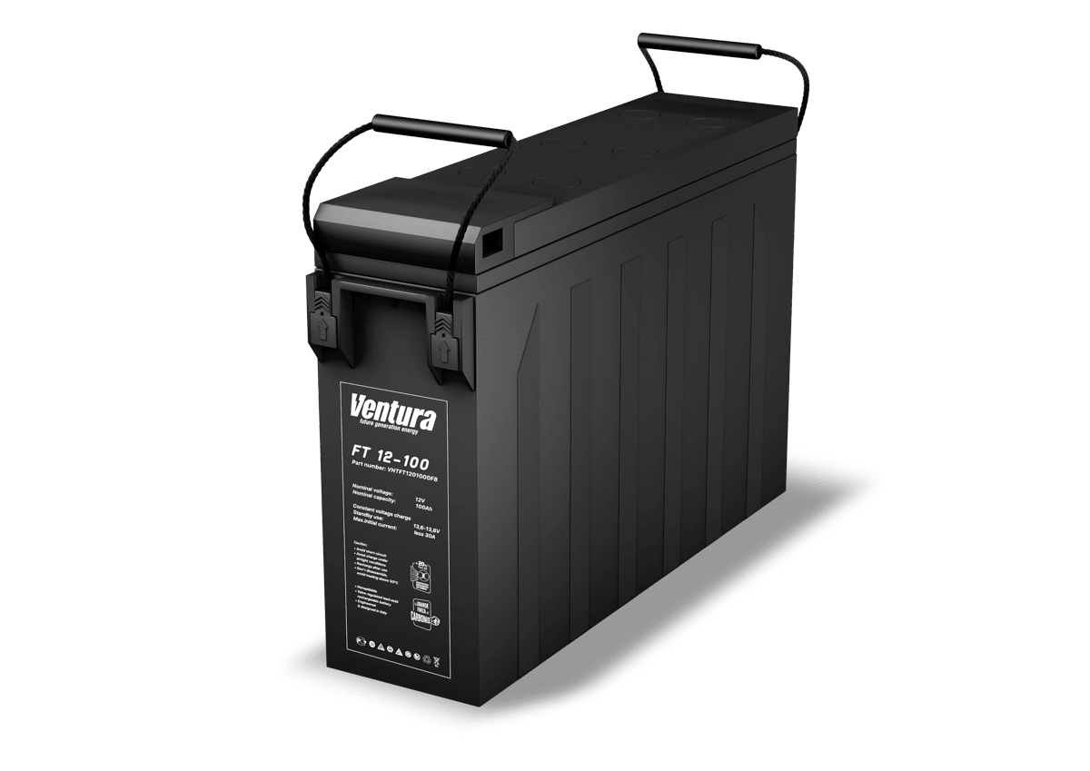 Герметизированные свинцово-кислотные аккумуляторы Ventura FT 12-100 изготавливаются по технологии AGM (технология AGM – аккумуляторы с жидким электролитом, впитанным в стекловолоконный сепаратор). Аккумуляторы Ventura FT идеальны для применения в коммерческих и бытовых источниках бесперебойного питания небольшой и средней мощности, оборудовании охранно-пожарной сигнализации, системах видеонаблюдения, устройствах автономного питания загородных домов, детских электромобилях, моторных лодках и др. Аккумуляторы серии FT могут работать как в циклическом режиме, так и в режиме постоянного подзаряда. Особенность серии — фронт-терминальное исполнение аккумуляторов, обеспечивающее удобство монтажа и обслуживания аккумуляторов в телекоммуникационных стойках или стандартных шкафах.