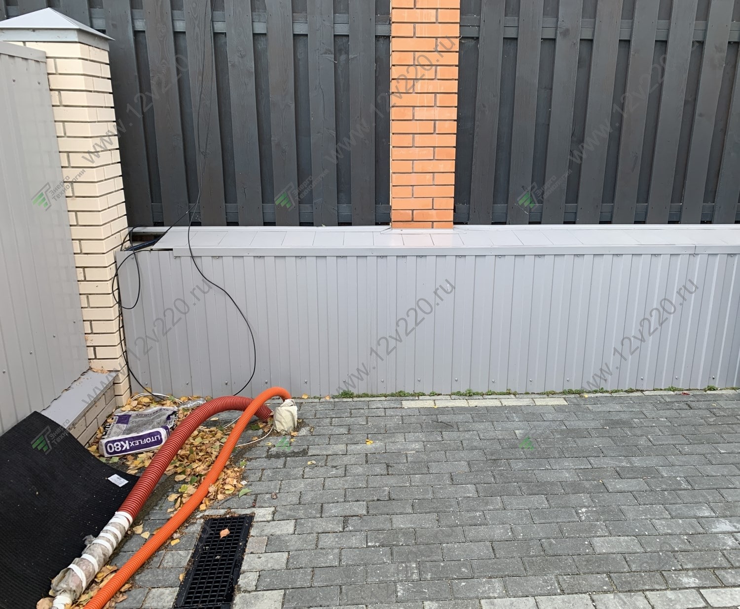 Серый цвет отлично подошел к плитке, забору и отделке цоколя. Многие заказчики обращают на это внимание.